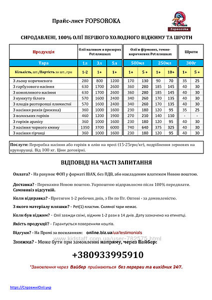 Ціни на повний асортимент продукції Fopsoroka,