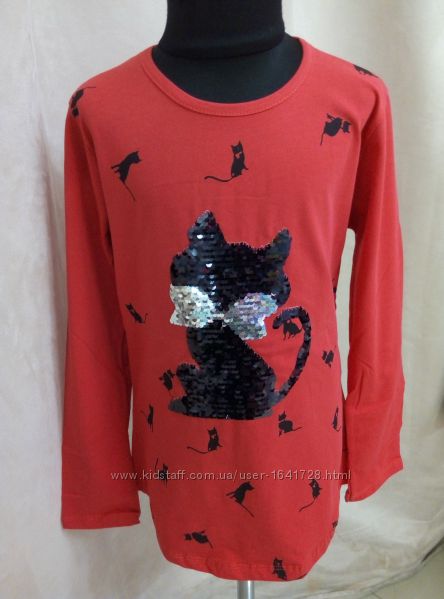 Тунички на девочек с паетками меняющими цвет перевёртышами с котиком кот