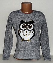Батник, кофта, реглан пайетки-перевертыши, для девочки 1-8 лет, начес.