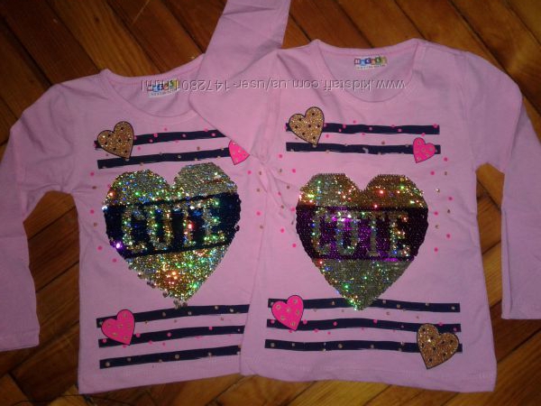 Подробное описание: Батник, кофта, реглан пайетки-перевертыши, для девочки 1-8 лет, начес.