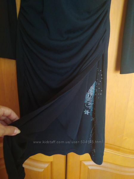 Классическое черное платье из плотного трикотажа на запах. Состояние нового. Тянется, скрывает изъяны фигуры. Замеры в нерастянутом виде:Пог 45Пот 37Поб 47Длина 97Рукав 60Тянется еще сантиметров до 10.Полноразмерный наш 48. На фото параметры фигуры ог 100,от 80, об 100 .