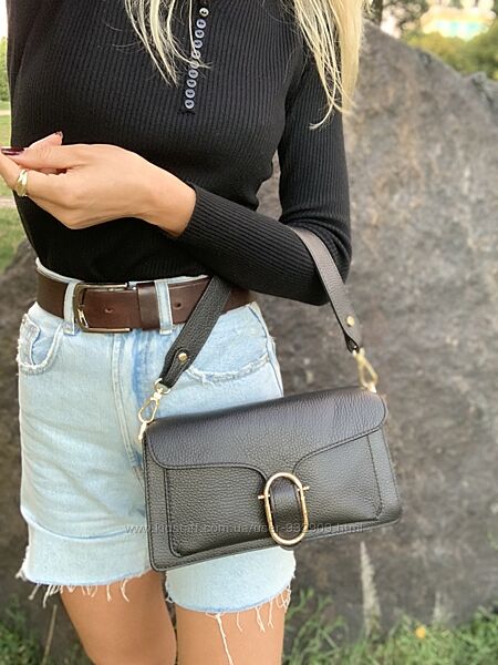 Женская сумочка Италия кожаная чёрная базовая небольшая Киев