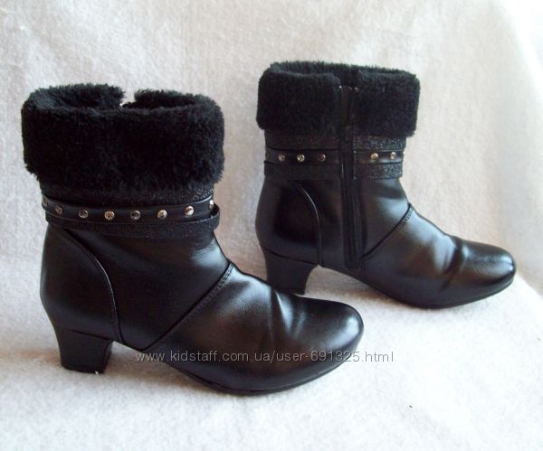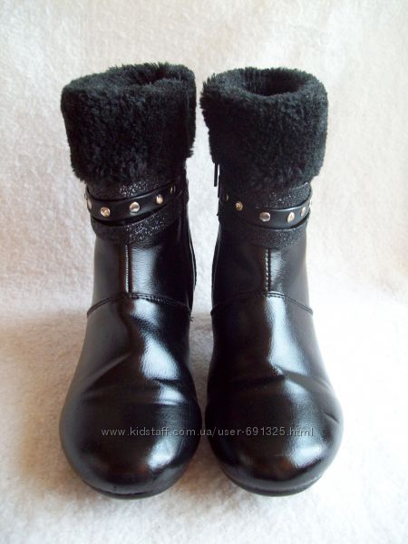 Предлагаю черные сапожки из искусственной кожи от Lilley. Внутри тонкий поролон, оторочены искусственным мехом. Б/у 1 раз аккуратно, состояние очень хорошее, смотрите фото.Размер указан 2, длина стельки 21,5 см, каблук 4 см, голенище 15 см, вверху 25 см.