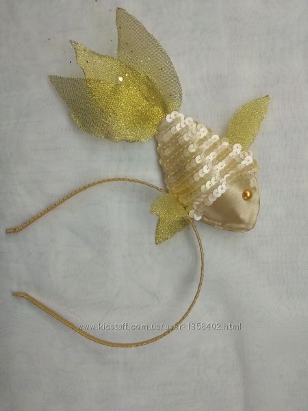 Обруч ручной работы золотая рыбка. Выполен из атласа, фатина, атласной ленты, парчи, покрыта золотым глитером. Абсолютно все сделано вручную. Красивый аксессуар на любой праздник :)