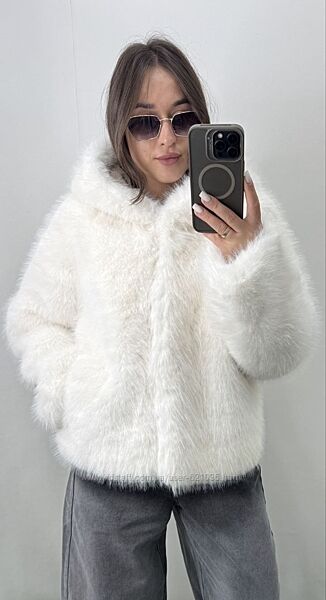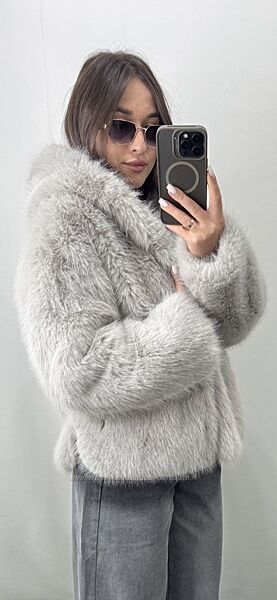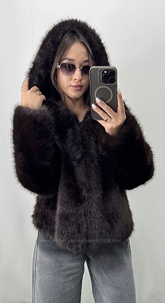 5-9) Фото реал. Шуба . Вкорочена модель, з капюшоном виконана зі штучного хутра