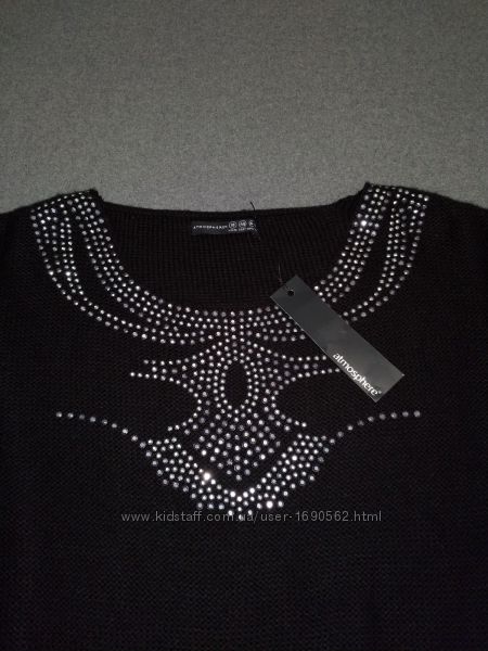Свитер Atmosphere, XL-2XL. Черный насыщенный цвет, красивая структурная вязка, декорирована металлическими камушками. Длина 51 см, плечи 47 см, грудь 62 см, рукав 59/42 см. Новый с биркой, сток!Смотрите все объявления и подписывайтесь на продавца, чтобы видеть все обновления!