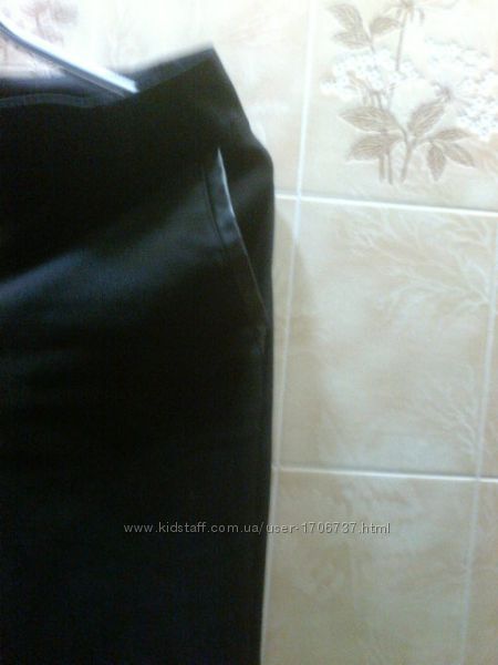 Костюм черный пиджак на змейке, змейка идет наискось, размер 38. длина от плеча 46см, длина рукава от плечей 45см сам рукав три четверти., карманов нет, Брюки классические , карманчики обшиты кож замом.Размеры: Длина от талии 99см, длина в бедрах 46см,, в поясе длина 38см. Очень красивые элегантный костюм приезжайте, меряйте,Ткань пиджака 75% polyester, 20%viskon, 5%lycra, а брючки потеплее.