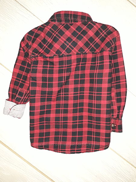 Яркая фирменная рубашка мальчику на 12-18 мес. Застёгивается на пуговички. Состав 100% хлопок. Состояние очень хорошееЗамеры: длина по спинке от плеча 38,5 см, ширина между подмышками 32,5 см, рукав от плеча 28,5 см, по внутреннему шву 19,5 см, плечи 27 см