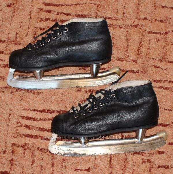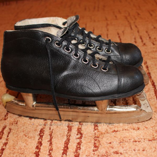 Винтажные коньки детские мужские ледовые, хоккейные, ретро, пр-во СССР, СвердловскНа коньках стоит размер 37, пробовала надевать на 37 на свою ногу - впритык с тонким носком. Так что больше подойдет на 36, если кого-то интересует возможность их использовать по назначению. Подойдут для кино- и фото-съемок, декорирования и костюмирования фотосессии в стиле ретро.