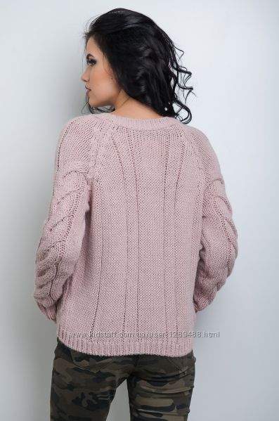 Очень теплый,полушерстяной,яркий,элегантный,укороченный пудровый джемпер Ramotex&Emir. Классическая,всегда в тренде, вязанная укороченная модель с утончёнными косами в передней части,с длинным эластичным рукавом-реглан, а также классическим вырезом горловины. Такой джемпер - незаменимый атрибут осенне-зимнего гардероба. Модель очень тёплая и комфортная, прекрасно сочетается со всеми возможными вариантами низа (джинсы, брюки, юбка), делая девушку самой стильной женщиной сезона.Модель представленна в универсальном размере,на 46/48
