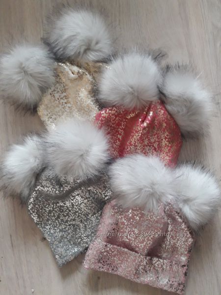 Подробное описание: Красивая, эффектная, яркая, уютная шапка с двумя помпонами, на флисе
