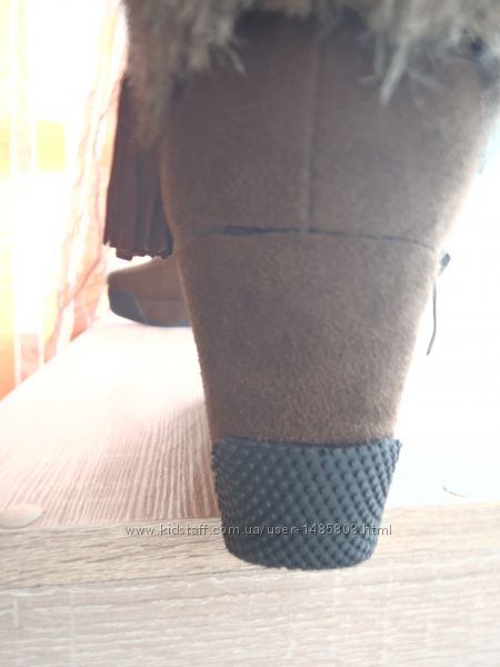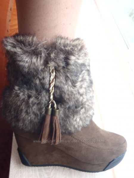 Новые зимние сапоги (р.37) из искусственной замши, внутри полностью на меху из натуральной шерсти, снаружи украшены искусственнным мехом, высота танкетки 7.2см, высота платформы в подносочной части 2.7см, длина стельки 24см. Очень комфортные, тёплые сапожки! Цвет: коричневый.Пишите сообщения, буду рада ответить на возникшие у Вас вопросы!
