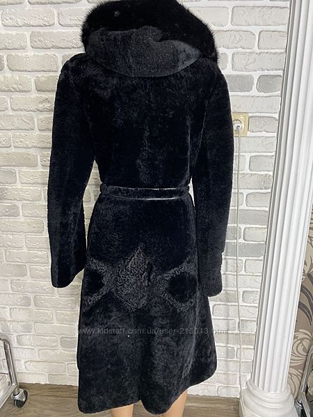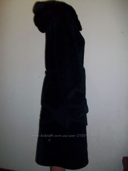 Шуба, шубка, полушубок Мутон, каракуль, норка Капюшон, пояс
