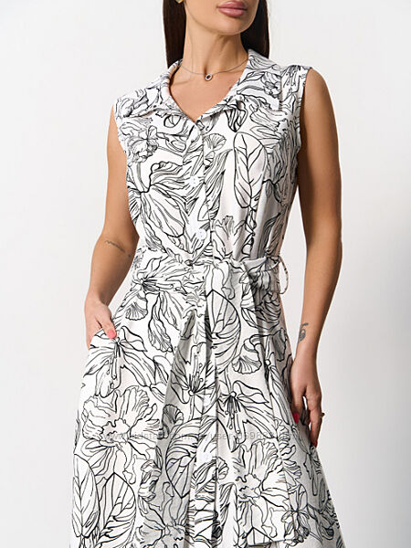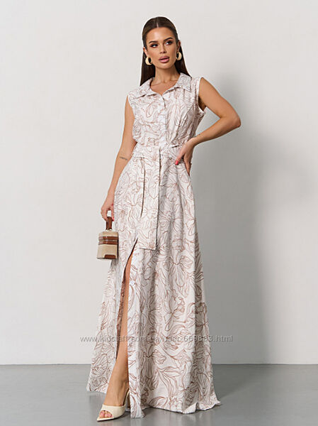 Літня лляна сукня-сорочка на ґудзиках у квітчастий принт. Модель без рукавів, класичного приталеного крою зі змінним паском. Плаття довжини максі, з комірцем та кишенями.Розмірний ряд: S, M, L, ХL
