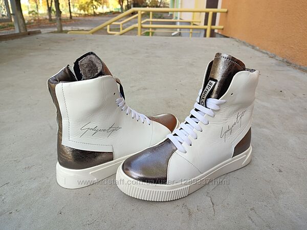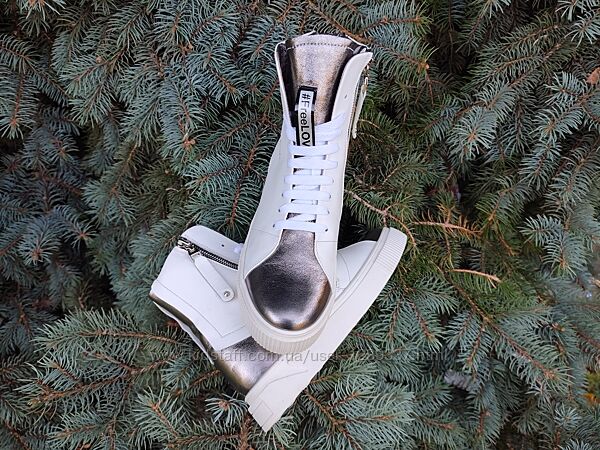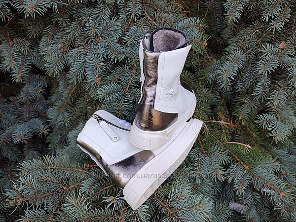Стильные белые зимние женские ботиночки Eclipse Art из натуральной лицевой кожи.Производство – Украина.