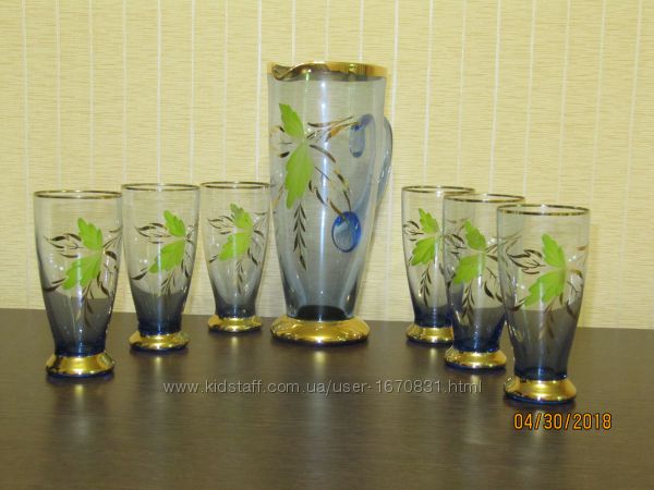 Продам очень красивый пивной(компотный) сервиз-набор на 6 персон, цветное худ. стекло;новый - "сервантное" хранение; Германия 60-е г. ХХв.6: - кувшин - 1( 35см );- бокалы - 6( 15см ). Только Киев.