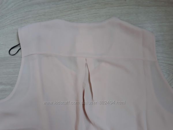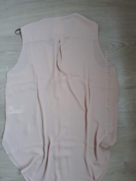 Очень красивая блузка без рукавов. Фасон деловой, но можно носить и с джинсами на выпуск.Размер 40 европейский (по этикетке), украинский 48-50, может и 52.ПОГ 51 см., ПОТ 55 см., длинна от плеча впереди 76 см., сзади 80 см.