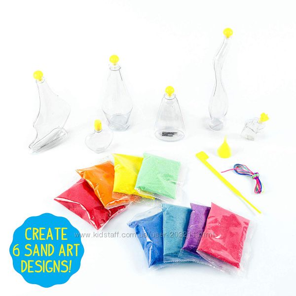 Создай свои уникальные дизайны с этим ярким и сверкающим песком! Создай подходящие цветовые схемы, которые будут аккомпанировать твоей комнате и укрась ими! Заполни бутылочки причудливой формы и используй их как декор или подарок! В наборе есть все необходимое.