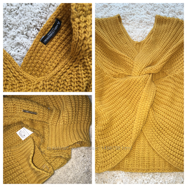 Стильний модний оверсайз грубої в´язки зі стильним переплетеним задом.Стан ідеальний, лише з внутрішньої сторони в деяких місцях є незначні кошлачення.