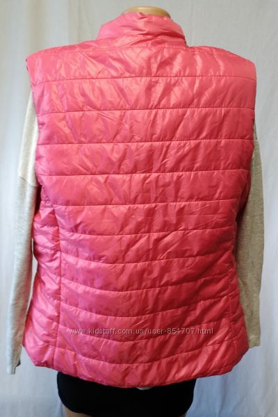 Жилет Esmara (Размер 50 (ХL, EU42))Лёгкий, удобный, в спортивном стиле. Верх лаковая легкая плащевка, утепление синтепон. 100% полиэстер. Цвет фуксии. Спереди два кармана на молниях. Застежка на кнопках.