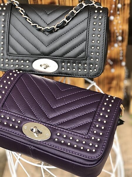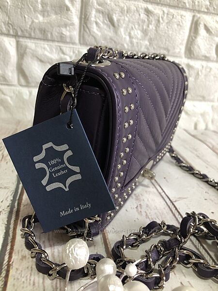 Подробное описание: Італійська шкіряна сумочка стьогана фіолетова