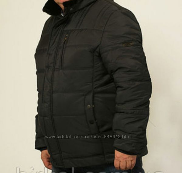 Тёплая зимняя стильная куртка, тёмно- синяя, хорошая , плотная, не шуршащая плащёвка, не промокает.Капюшон отстёгивается.Воротничок-чёрный мягкий искусственный мех. 3 внешних + 1 внутренний кармана.Застёжка- молния + кнопкиРазмерный ряд: 58-68.Ткань: Плащевка "Канада"