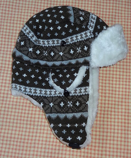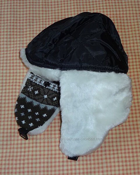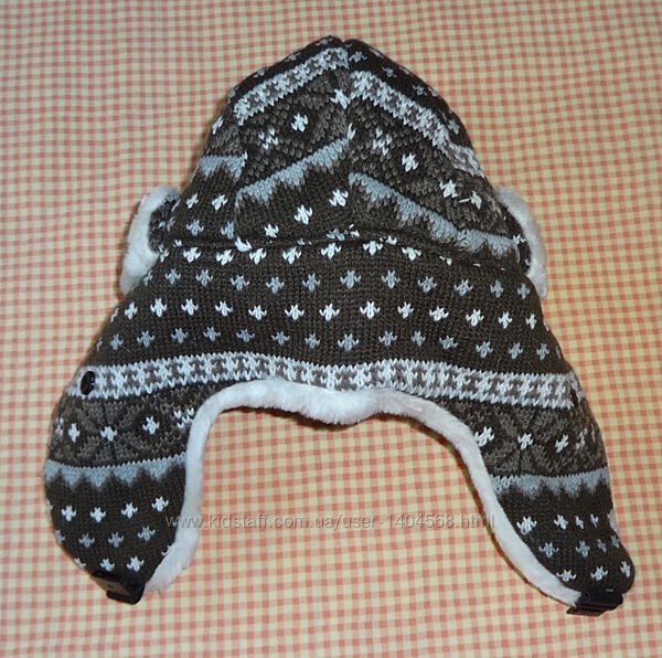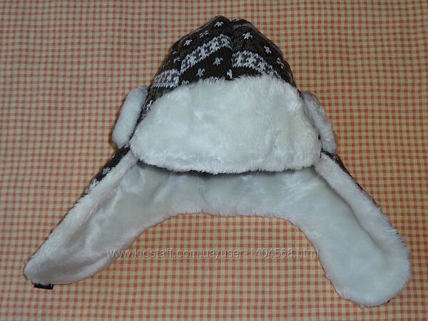 тёплая шапка-ушанка для мальчика 5-10 лет. Размер 54-55.Верх - вязаный плотный трикотаж с орнаментом, подклад - полиэстер чёрного цвета, утеплитель - синтепон.