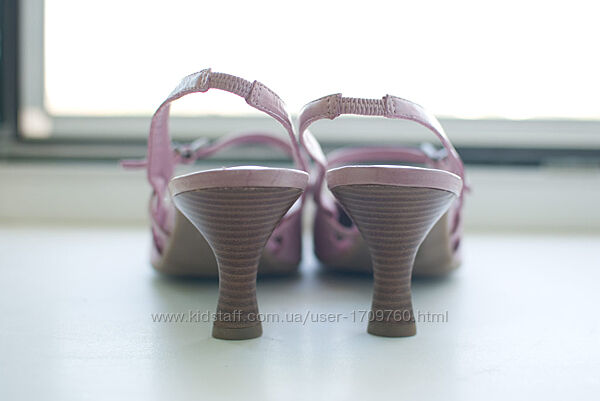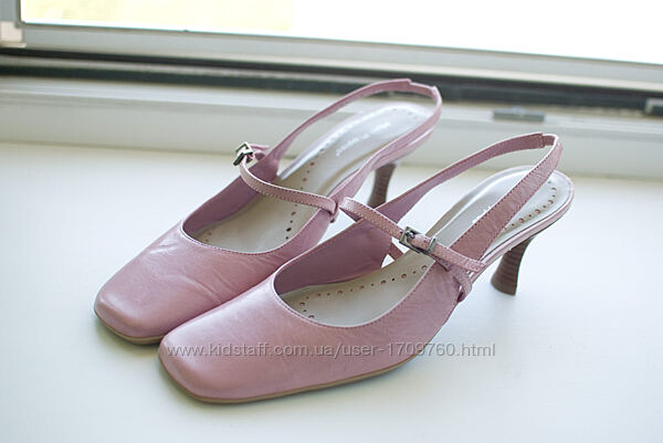 Натуральна шкіра, зручні підбори 5 см. Колір - рожевий з перловим відливом. Чудово пасуватимуть до вечірнього або весільного вбрання. Привезені зі США, є оригінальна коробка.Розмір - 10 (41), довжина по устілці - 28 см.