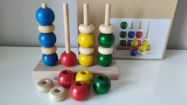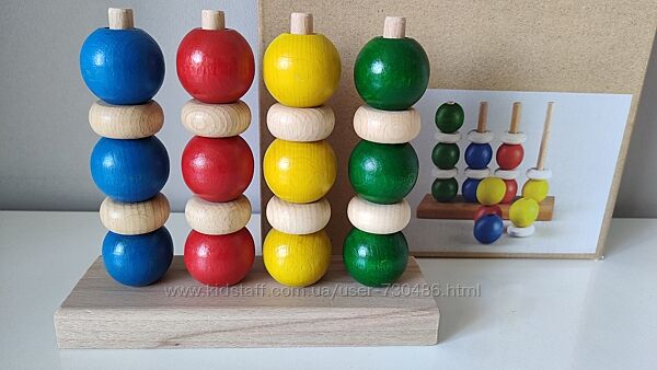 Подробное описание: Дерев´яна пірамідка сортер Млинці та Пончики, Тато. В наявності.