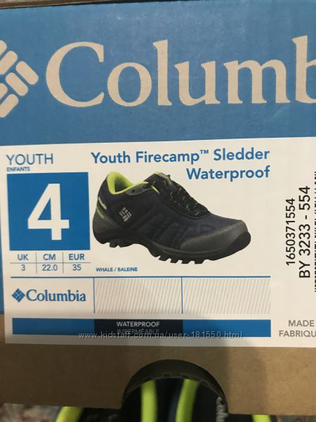 Кроссовки Columbia waterproof 35р на ножку 22 см, вся стелька 23 см. UK 3. USA 4. Youth Firecamp Sledder Waterproof. Ориентируйтесь в см. Немного маломерки.Новые. Переросли.