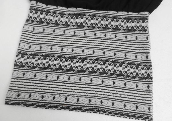 Интересное платье. Внутри идёт типа маечки из плотного трикотажа, сверху лиф из ниспадающего шифона. смотрится очень нарядно и стильно.Низ облегающая юбка с геометричным принтом.