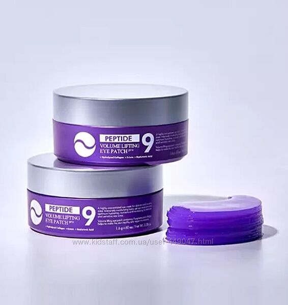 Патчі Medi Peel Peptide 9 Volume Lifting Eye Patch PRO ідеально підходять для тих, хто шукає цілеспрямоване рішення для боротьби зі зморшками навколо очей, набряклістю та ознаками старіння, і є обов´язковим елементом комплексної процедури догляду за шкірою.