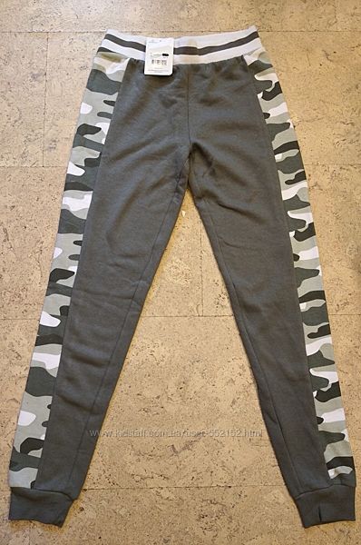 Штаны цвета хаки с вставками(лампасами) камуфляжного цвета.Широкая пришивная резинка в поясе и манжетах.