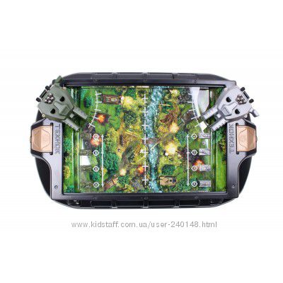 Игрушка "Танковые баталии ТехноК"- увлекательная и динамичная настольная игра с ярким игровым полем. У каждой стороны есть большая пушка с металлическими шариками-снарядами и 4 танка.Правила игры - очень просты. Нужно зарядить пушку двумя шариками-снарядами, прицелиться с помощью объектива и осуществить выстрел. Выигрывает тот, кто первым собьет все танки противника.