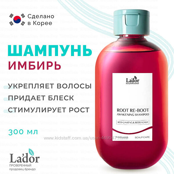 🔥 Шампунь для росту волосся Lador Root Re-Boot Awakening Shampoo (Red Ginseng and Beer Yeast ; Червоний женьшень та пивні дріжджі ) 300 мл 🔥 /Підходить для нормального та сухого волосся.