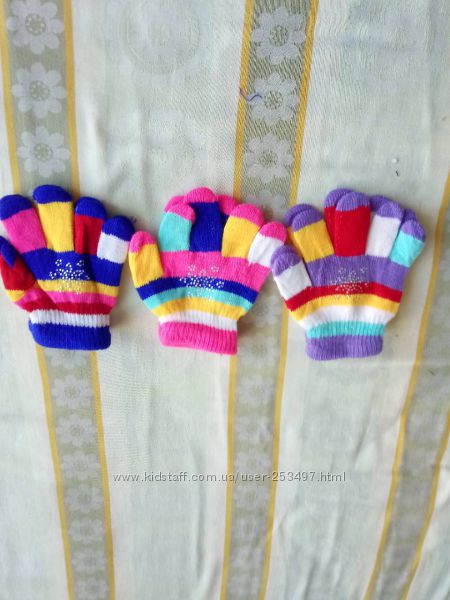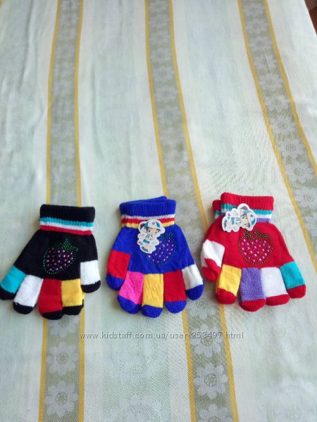 Продам детские перчатки. Возраст 3-4 года.Перчатки одинарные, разноцветные. Очень красочные. Есть разные цвета и рисунки (дополнительные фото могу выслать по запросу). Наличие уточняйте.