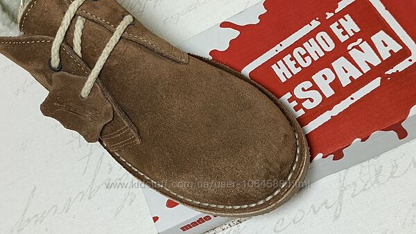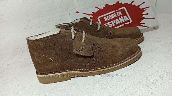 Зимові Жіночі, черевики - дезерти, натуральна замша, замша щільна і добротна, Всередині штучне хутро, кольори яскраві, насичені. Підошва міцна та добротна, повторює форму ноги, взуття легке та дуже зручне. Зимові черевики якісні та стильні. Виробник Іспанії!Фото1