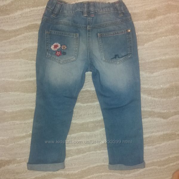 Джинсы некст на 2- 3 года. Замеры: длина 58 см, пояс 24 см, внутр.шов 39 см. Есть утяжка. Колени прошити ниткой. По ноге идут ровные.Другие объявления продавца