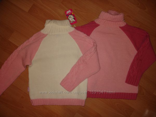Фото 1-2 - Свитер с отворотом, производство Украина Лютик, цвет бело-розовый 86 104 116, розово-коралловый 116, состав 40% шерсть 60% акрил.фото 3-4 - Трикотажная кофта на молнии для девочки, производство Украина Лютик, размер 86 92, состав 40% шерсть 60% акрил.