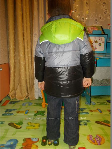 Моделька удлиненная, спинка будет закрыта, капюшон хорошо сидит, снизу есть утяжка, можно затянуть, чтоб не задувал ветер, рукава на резинке, очень удачная модель с тильная, яркая, удобная, жаль мы переросли.