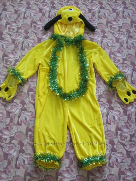 Продам новогодний костюм Собачка, подойдет для мальчиков и девочек. Покупали за 400 грн. Позитивный, добрый костюм для веселых малышей! Костюм в отличном состоянии. Желтого цвета, с хвостом, лапками и головой собачки.Варежку-лапку можно одевать на руку или чтобы свисала в виде рукава. Голова собачки сделана удобно, лицо ребенка ничем не закрыто. Костюм сделан цельным комбинезоном, снизу штанин – резинка для плотной утяжки по ноге, штанину можно поднять выше или ниже в зависимости от роста ребенка. Сбоку застегивается на липучки. Костюм красиво украшен зеленым дождиком (при необходимости можно снять). Подойдет для деток 3-6 лет. Длина рукава с учетом варежки – 44см. Длина от плеча до низа штанины – 78см. ! Смотрите другие мои объявления, много интересных оригинальных вещей по доступным ценам, всё отличного качества !Самовывоз из г.Николаева или встреча по договоренности. Возможна пересылка в другие города Новой Почтой, Укрпочтой или наложенным платежом за счет покупателя.