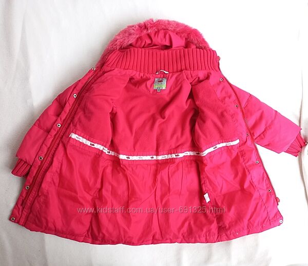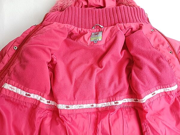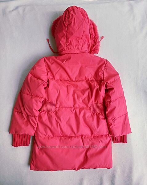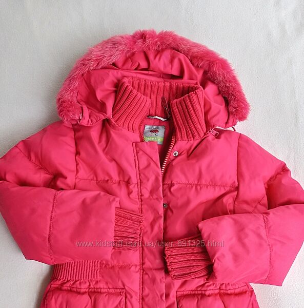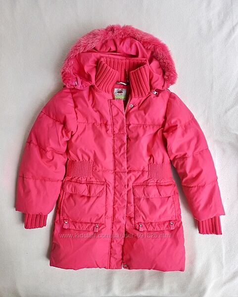 Пропоную якісний теплий пуховик Beetle для дівчинки. Колір ближче до коралового. Верх щільна плащівка, підкладка на спинці флісова, пух наповнювач 80%, перо 20%. Капюшон оздоблений натуральним хутром, відстібається. Уживаний в школу, стан загалом дуже хороший, але є кілька ділянок з цятками, видно тільки зблизька, дивіться фото.Розмір вказаний 120, йде на 7-8 років, зріст 122-128 см. Мірки: довжина 70 см, плечі 38 см, рукав 45 см, з в´язаною частиною 52 см, ширина спинки під пахвами 45 см, ширина талії 40 см, тягнеться.