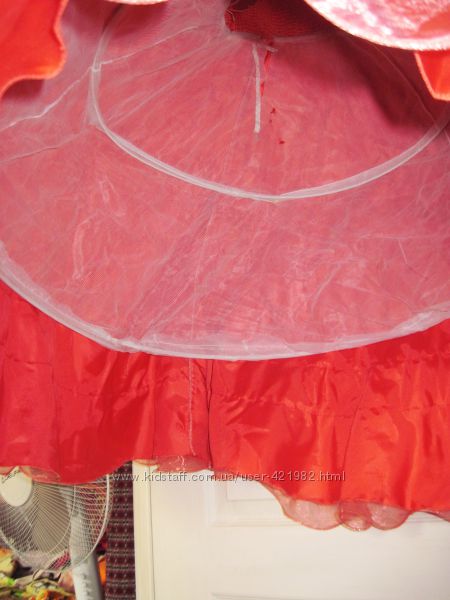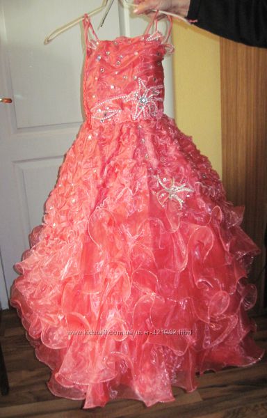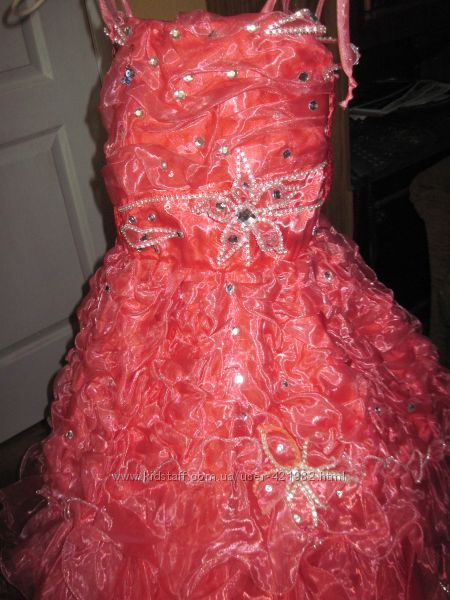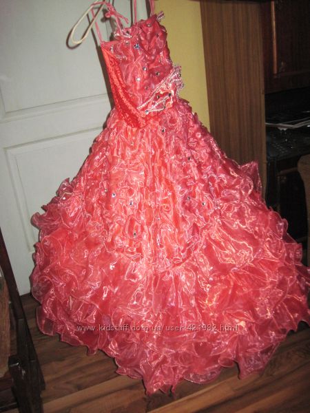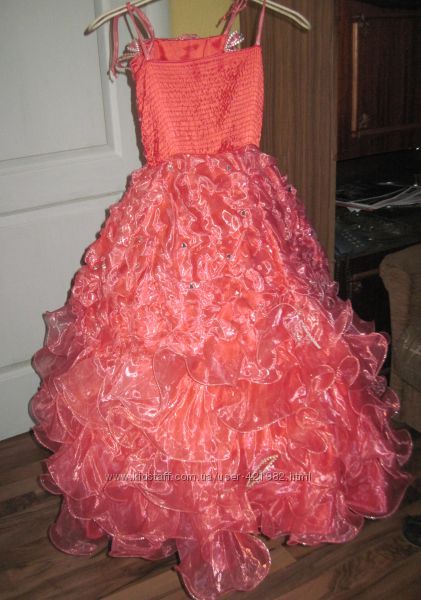 Платье нарядное бальное для девочки , очень яркое, праздничное, носили мало, талия 30 см, боковой шов до талии 17 см, вверху тонкие лямки регулируются, , длина юбки 78 см, 2 кольца под юбку на сетке, на атласной юбке нашиты оборки полиэстеровые, много камешков,цветов, цена 750 грнДругие объявления продавца