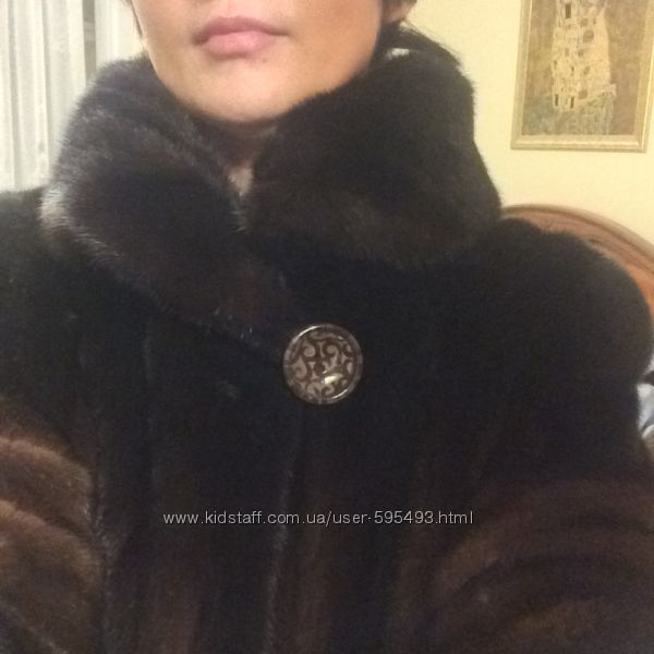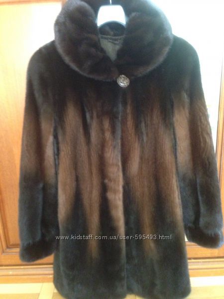 Легкая шубка из коричневой норки на р.S-M, форма -трапеция.Красивый контрастный окрас, мех красивый, красиво спадает фалдами. Рукав с манжетом. Большой красивый воротник. Дефектов и нюансов нет. Длина 85см, рукав от воротника 73см. В отл сост.