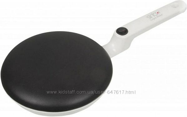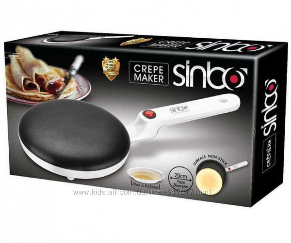 Блинница Sinbo S p 5208 Crepe MakerБлинница Sinbo Sp 5208 – компактная и практичная модель для приготовления вкусных домашних блинов. Она выполнена из прочного и износостойкого пластика, благодаря чему не только имеет небольшой вес, но и длительный эксплуатационный срок. Материал стойко выдерживает высокие температурные нагрузки, а рукоять не нагревается в процессе работы. Прибор хорошо подходит для подарка друзьям и близким. Он крайне удобен в пользовании, не требует особого ухода и легко очищается. Блинница Sinbo Sp 5208 используется для приготовления блинов диаметром до 20 см. Работает она от электросети и включается при помощи небольшого переключателя на ручке. Благодаря антипригарному покрытию тесто не пристает к поверхности сковороды. Длинная рукоятка имеет эргономичную форму, поэтому хорошо лежит в руке и не выскальзывает при переносе.
