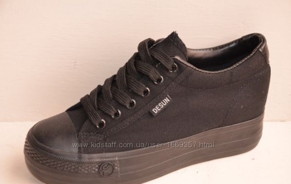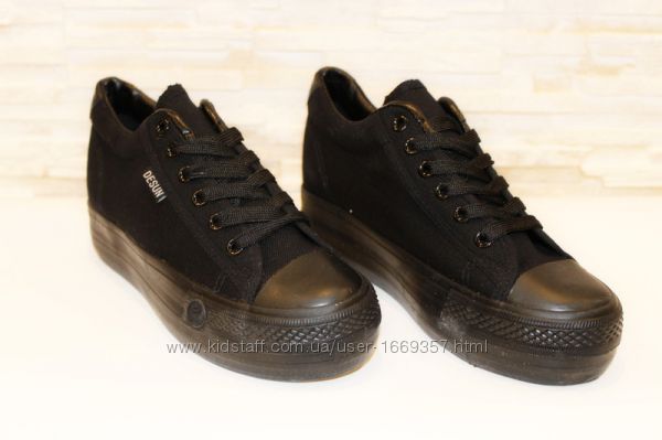 Подробное описание: Кеды черные женские на скрытой танкетке Т425
