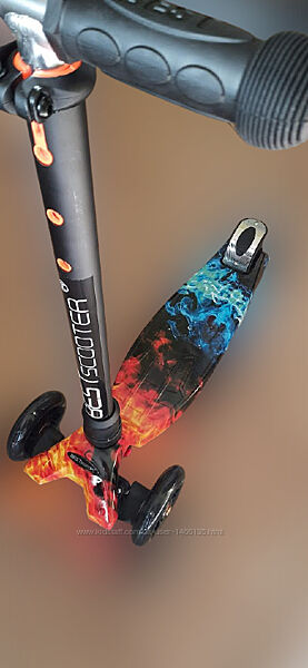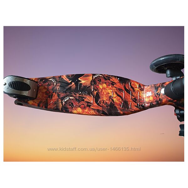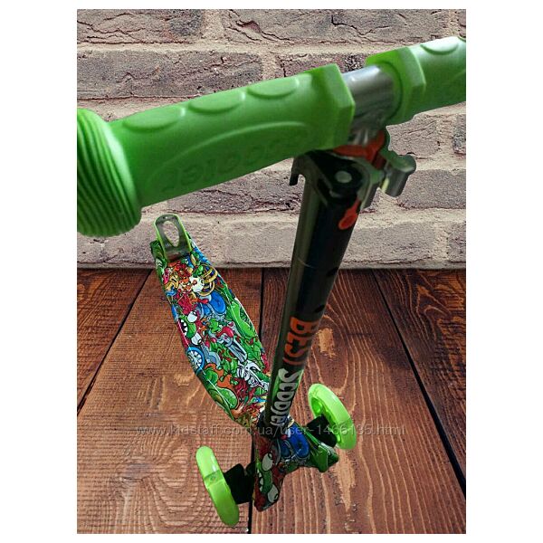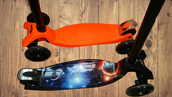 Колеса PU мягкие и бесшумные, в движении красиво светятся, оснащены скоростными подшипниками АВЕС – 7. Диаметр больших передних колес составляет 12 см, два задних совмещенных размером 8 см. Ширина подножки 14 см. Габариты упаковки: 620/160/310 миллиметров. Яркий и красочный самокат со светящимися колесами подарит много радости ребенку на прогулке.