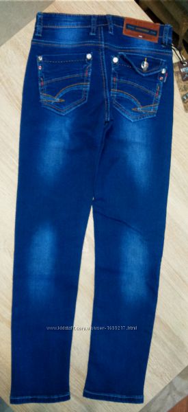 Джинсы cиние фирмы Vesidy. Состав ткани: 80% хлопка и 20-полиэстера. Страна-производитель: Китай. На внутренней стороне пояса нет утяжки по талии. Замеры 30 (7-8 лет): длина по боковому шву 82 см, шаговый шов 60 см, ширина по поясу 30 см, ширина по бедрам 37 см, посадка спереди 20 см, посадка сзади 26 см, ширина штанины для ножки вверху 21 см и внизу 12 смРазмер 31 (8-9 лет): длина по боковому шву 84 см, шаговый шов 63 см, ширина по поясу 31 см, ширина по бедрам 39 см, посадка спереди 21 см, посадка сзади 28 см, ширина штанины для ножки вверху 22 см и внизу 13 см