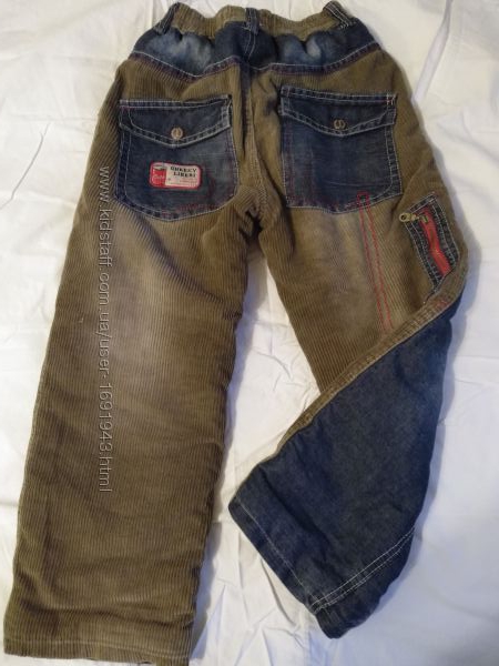 Продам супер теплые, классные штаны на мальчика на синтепоне. Верх джинс с вельветом. Состояние отличное. Носить будете с удовольствием.Замеры : длина штанины по наружной стороне -75 см; шаг- 55 см; ширина талии 26 см;