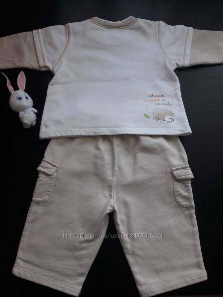 Продам красивый коттоновый костюмчик Chicco. Покупался в фирменном магазине. Не сток и не секонд! Одевался несколько раз. Есть маленькое пятнышко еле заметное пятнышко на штанах. . Подходит на рост от 62 см.Пересылаю НП, Укрпочтой. Для киевлян возможен самовывоз от м.Дарница/Ленинградская(Дарницкая площадь).
